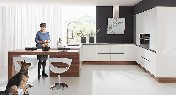 Biały MDF ocieplono okleiną z naturalnego orzecha, ok. 24 000 zł (bez AGD), Atlas Kuchnie