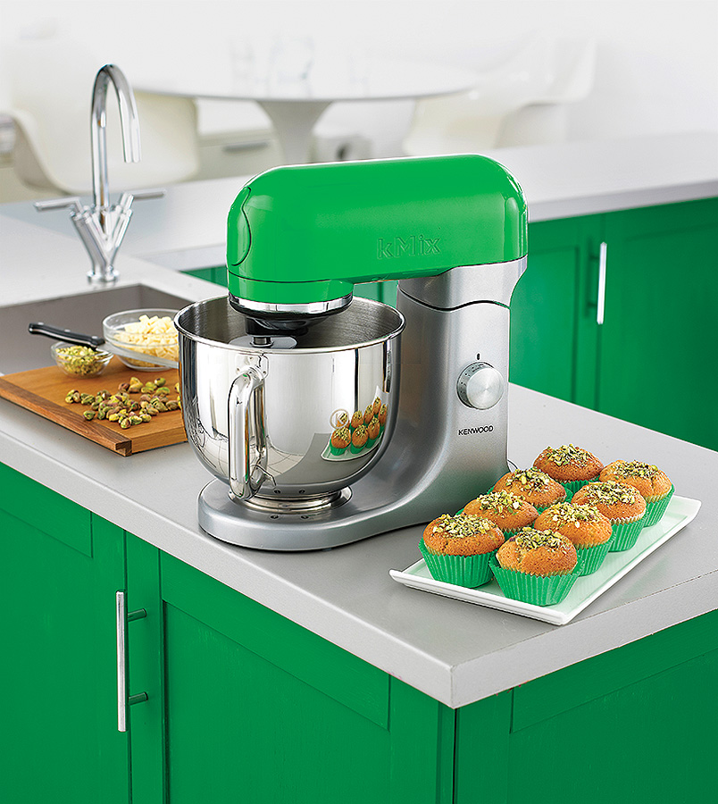 Robot (zielony albo żółty) w cenie 1999 zł, mikser (pomarańczowy lub fioletowy) za 349 zł, KENWOOD
