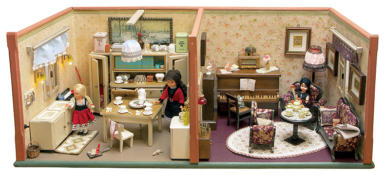 Panna Julia mieszka w kamienicy z lat 30. Lubi solidne, ręcznie malowane meble, ma słabość do kryształowych żyrandoli i bibelotów. Co tu dużo mówić – nieźle zagraciła dom. Wazoniki z kwiatami, koronkowe serwetki, haftowane poduszki, pudła ze skarbami i wszędzie porozrzucane damskie fatałaszki. Na sprzątanie przyjdzie czas, póki co plotkuje z przyjaciółką w saloniku, popijając herbatę z zielonej porcelany. Służąca, która krząta się po niewielk