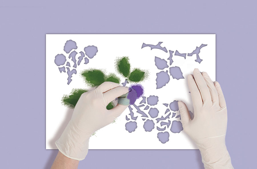 Dokładnie dociśnij szablon do ściany, tak by mokra farba nie wyszła poza "linijkę".