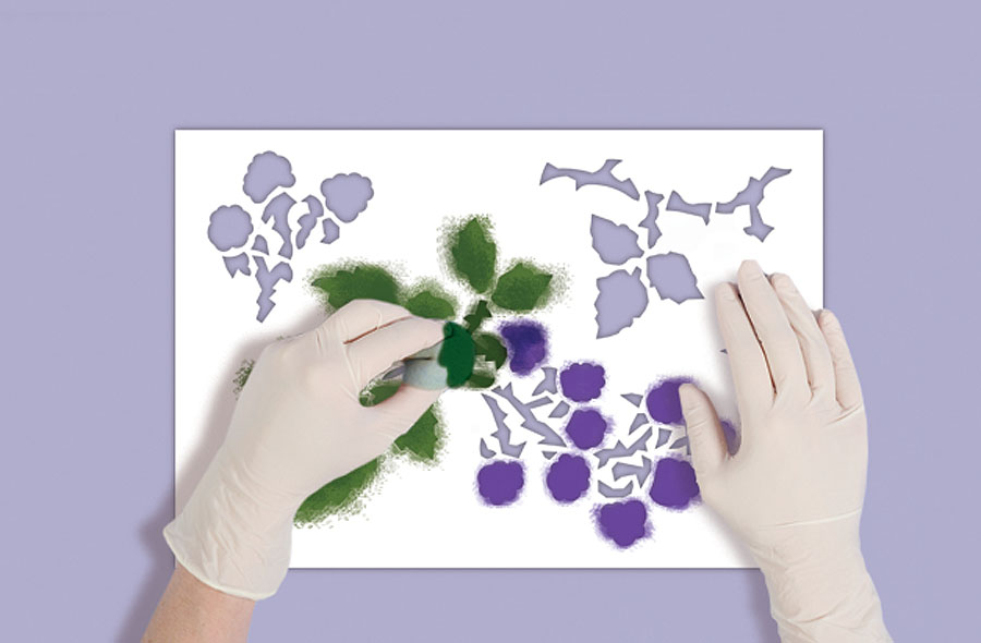 • Dokładnie dociśnij szablon do ściany, tak by mokra farba nie wyszła poza linijkę .