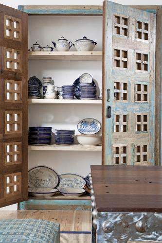 • Ze staregodrewna meksykański stolarz- artysta zrobił wezgłowie łóżka i nocne stoliki.