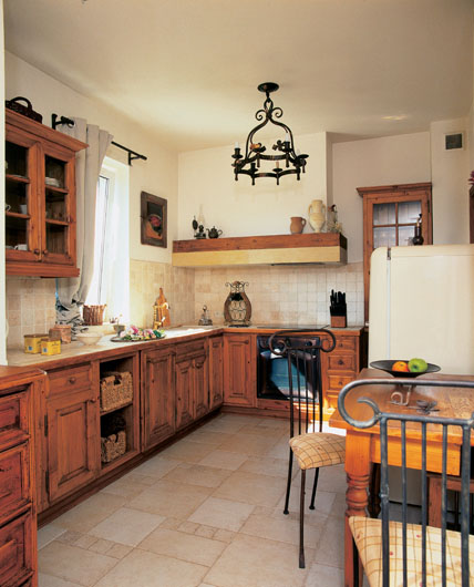 Alicja lubi francuskie klimaty i naturalne materiały. A poza tym – prostotę. Unika wszelkich gadżetów i ozdób. W domu ma być tylko to, co potrzebne. Urządzając mieszkanie połączyła styl francuskiej prowincji z polskimi kolorami – naturalnym jasnym drewnem i kolorem surowego lnu. Kuchenne szafki  - prawie prowansalskie, nie są bielone. Do tego trawertynowe płytki na ścianach i podłodze, kuty żyrandol i krzesła. I kuchnia ma swój unikalny styl...