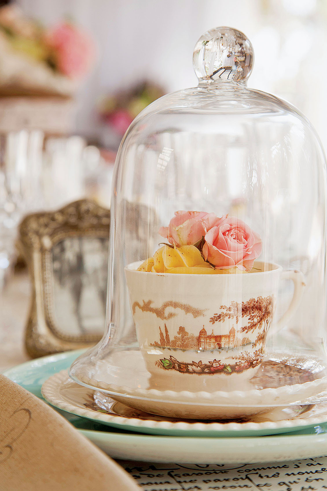 • Etażerka z pastelowymi różami wygląda równie słodko, jakby ułożono na niej praliny.