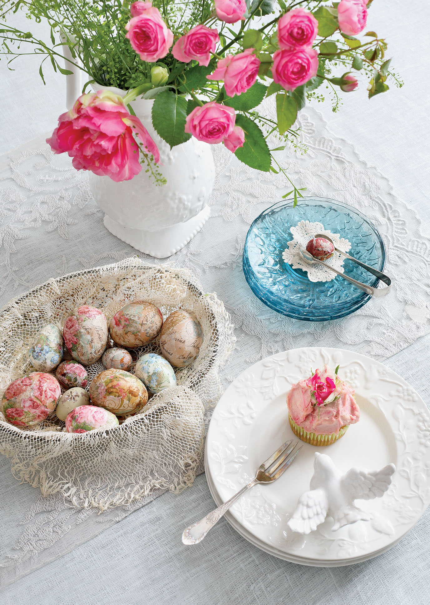 Jaja nie muszą być malowane, baranki - przesłodzone, a kwiaty równo przycięte. Na święta zabawmy się w dobrego scenografa. Kwiaty na stole Najczęściej trafiają po prostu do wazonu, ale miłą odmianą może być bukiet powieszony nad stołem. Pojedynczy kwiat przywiązany wstążką do serwetki zastąpi ozdobną obrączkę. Czasem kwiaty można po prostu... upiec – pierniczki z Pracowni Artystycznej Sarzyński mają kształt tulipanów. Wiosnę na stole uczyni „kwitnąca”