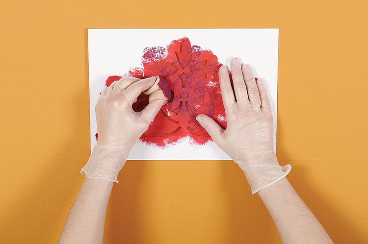 • Nakładanie farby przez szablon. Wiktoriański wzór