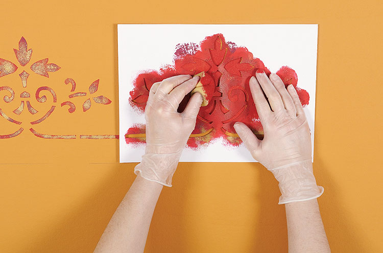• Nakładanie farby przez szablon. Wiktoriański wzór
