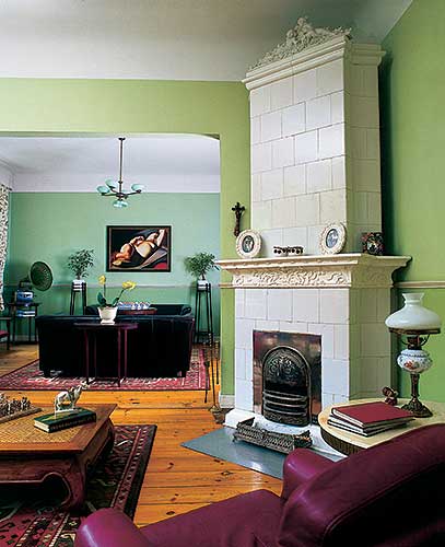 • Piec kaflowy z 1924 roku jest równie stary jak dom. Od początku stał w salonie, ale od kiedy zamieszkała