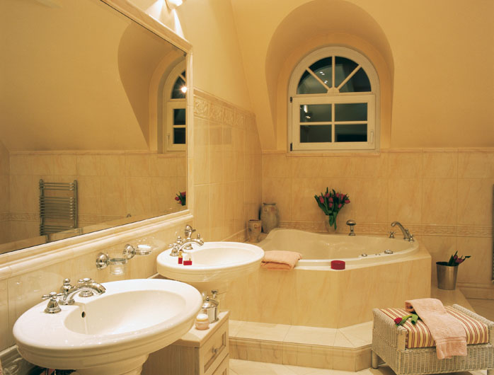 • W rezydencji znajduje się kilka łazienek. Ta przylega do sypialni gospodarzy