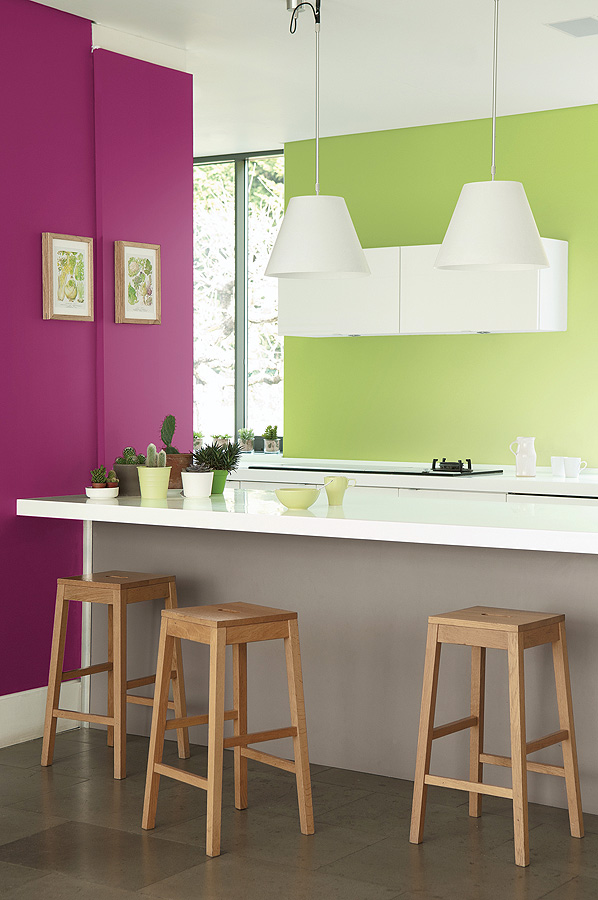 Zielona Wyspa i Szlachetna Purpura z kolekcji Kitchen & Bathroom, ok. 75 zł/2,5 l, DULUX