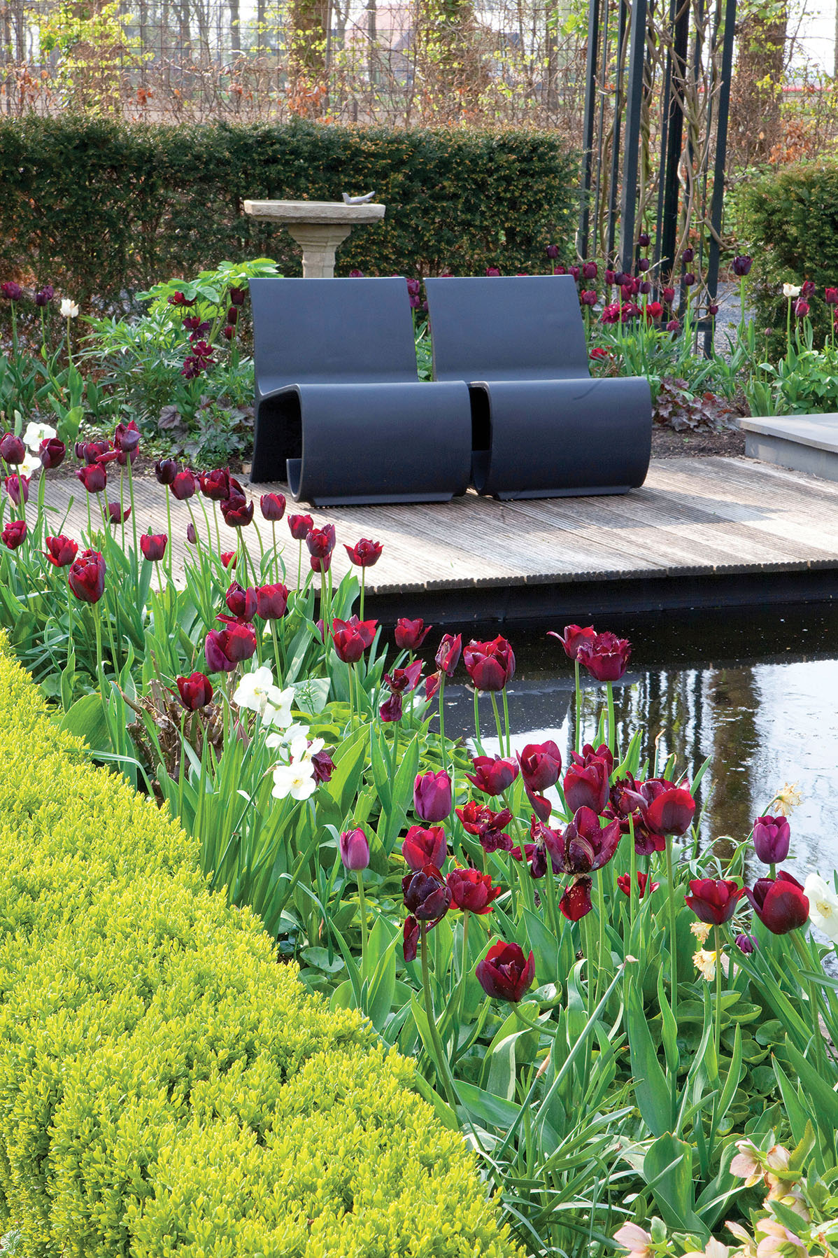 Powrót do artykułu Wiosna nad stawem – holenderski ogród pełen tulipanów