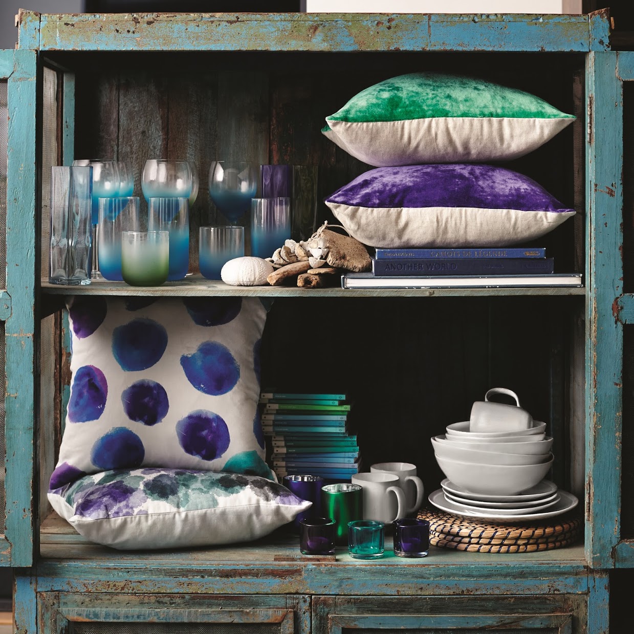 Dla tych którzy tęsknią już za letnimi wypadami nad wodę F&F Home przygotowała linię Oceanic, w której przeważają głębokie granaty, bakłażanowe fiolety, morskie zielenie, kobaltowe błękity, a także odcienie chabru i turkusu.   Inspiracją było piękno oceanu i nadmorska atmosfera. W nowej linii znajdziemy poduszki w akwarelowe wzory, niebieską ceramikę z kontrastową, pomarańczową obwódką oraz kolorowe szkło: kieliszki, szklanki, świeczniki. &nbs