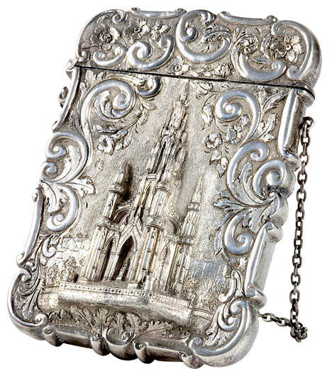 Srebrny wizytownik typu castle top z warsztatu Nathaniela Millsa, Anglia 1846-1847 r., z kolekcji Włodzimierza Hermana, fot. G. Kołodziej i J. Twardowski/JTFOTO.DK