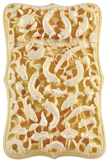 • Wizytownik z kości słoniowej z rzeźbą Świat morza , Chiny, około 1890 r., z kolekcji Włodzimierza Hermana, fot. G. Kołodziej