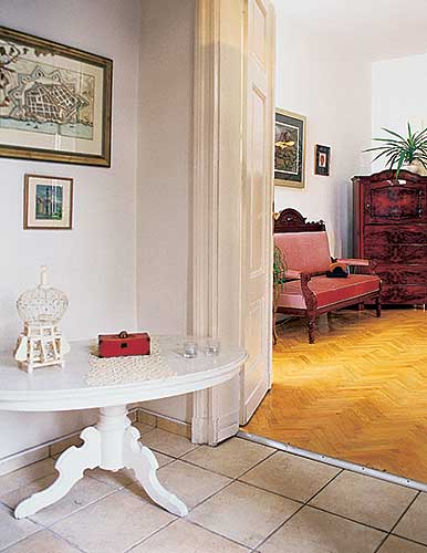 • W holu stoi mały biały stoliczek. Włoska uroda