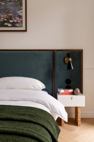 • ciemna turkusowa sypialnia