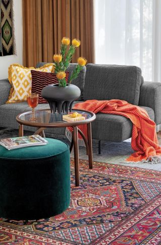 • modne meble o zaokrąglonych kształtach w salonie