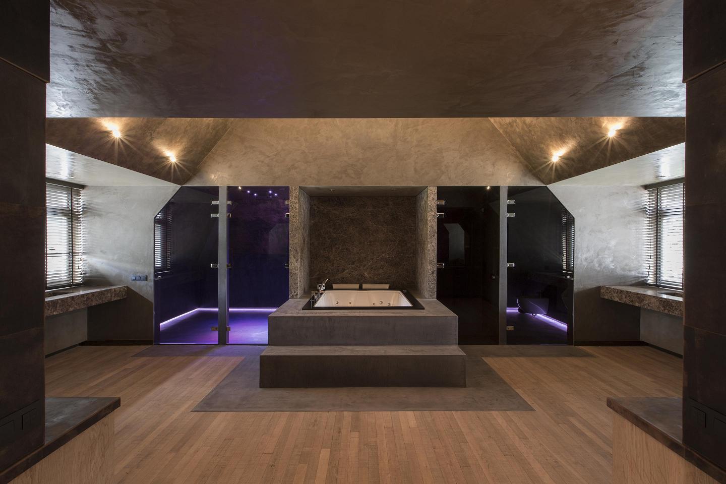 Elegancka rezydencja w holenderskim mieście Utrecht zrealizowana została z dużym rozmachem i wykorzystaniem najwyższej jakości materiałów wykończeniowych. Na powierzchni ponad tysiąca metrów kwadratowych rozmieszczone zostały: przestronny salon, sypialnie, łazienki, imponująca garderoba, duży basen kąpielowy i strefa wellness. Autorem koncepcji wnętrz jest znany holenderski architekt Stephen Versteegh, absolwent wzornictwa przemysłowego na Delft University of Technology oraz Des