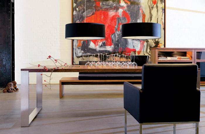 • Vogue od Santarossy: stół z czarnym szklanym blatem - 3060 zł, krzesło - 2160 zł, komoda - 7290 zł. HEBAN