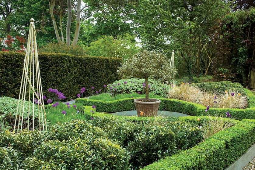 • Dwa hektary otoczone wodą, z resztkami starych ceglanych murów, różanymi pergolami, równiutkimi żywopłotami. Im dalej