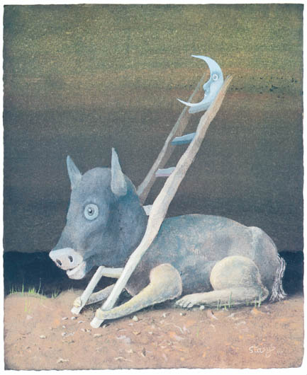 O, proszę, takie muzeum sobie namalowałem – Stasys znika gdzieś w zakamarku pracowni i powraca z płótnem. Niewielki obraz przedstawia budynek w kształcie splecionych ze sobą liter S i E. E to konstrukcja przypominająca tradycyjny drewniany litewski dom o spadzist