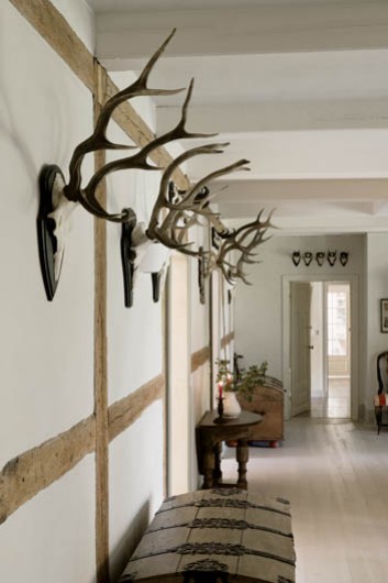 • W holu znalazło się miejsce dla myśliwskich trofeów.