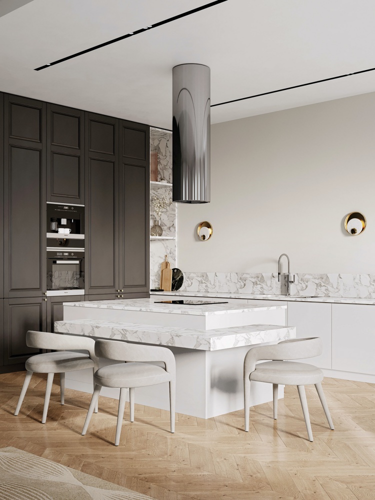wyspa na środku kuchni