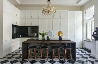 • wyspa kuchenna w mieszkaniu w kamienicy