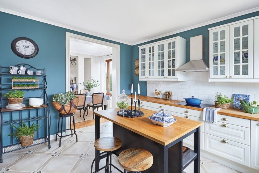 • niebieska wyspa kuchenna