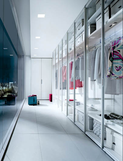 Garderoby XXI wieku chwalą się ubraniami jak witryny kolekcją porcelany. Są przestronne niczym ekskluzywny butik i zdyscyplinowane jak wojsko. Jak powiedział Picasso: „Innych kopiować należy, ale kopiować samego siebie – to tragiczne”. Więc firmy „garderobiane” coraz chętniej podpatrują sąsiadów, którzy coś dla domu wymyślają. Włoski Poliform zainspirował się modnymi przeszklonymi łazienkami, budowanymi dziś nawet na środku sypialni. Projektanci słynnej ma