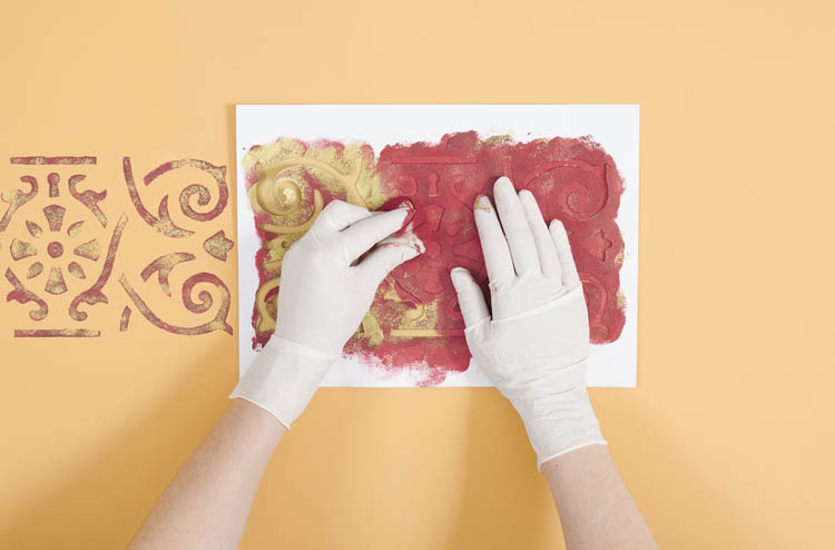 • Do namalowania wzoru potrzebne będą: farby Magnat: S24 Kuszący Rubin i S19 Blask Kakcytu oraz tampony z gąbki.