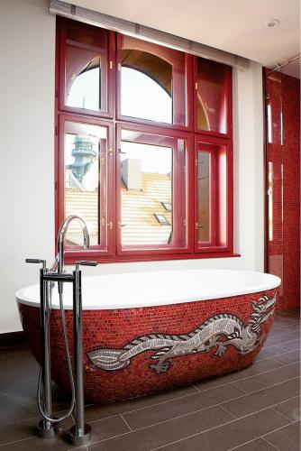 • Sztuka mozaiki doprowadzona do perfekcji. Wanna z kolekcji Sultan, a na ścianie Flower Power – panel wielkości 150 x
