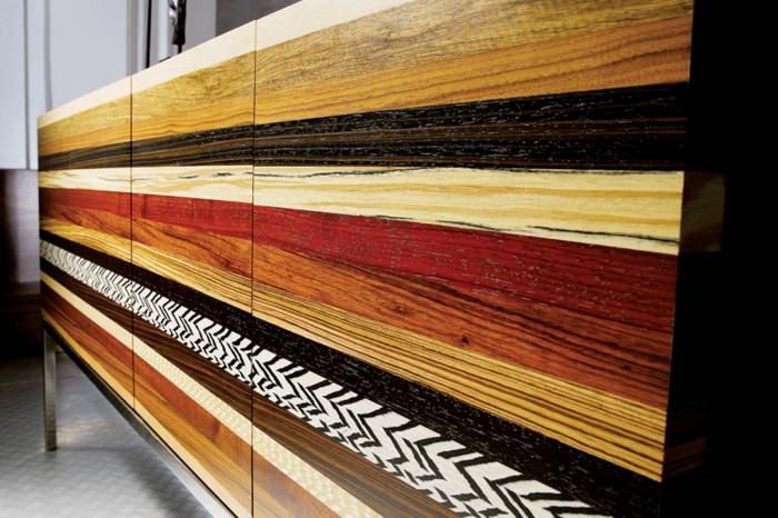 Jarosław Bełza Paski z drewna zebrano, wenge, makassar, hebanu i palisandru.