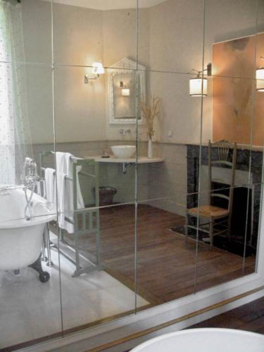 • Za ścianą z lustrem ukryte są natryski i toaleta.