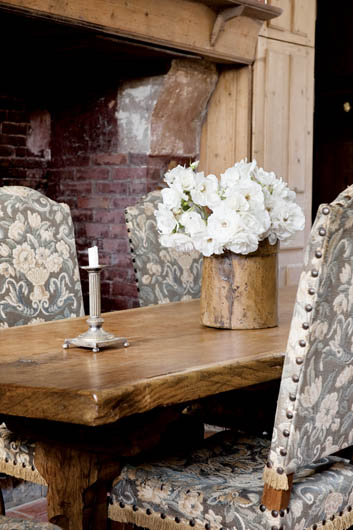 • Dominującą w sypialni tkaninę Charles dobrał do oryginalnego potralu kominkowego z szarego marmuru.