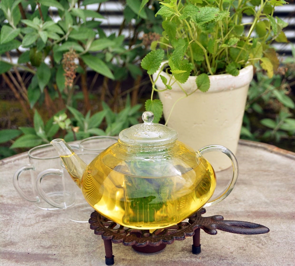 • szklany dzbanek z zaparzaczką do herbaty