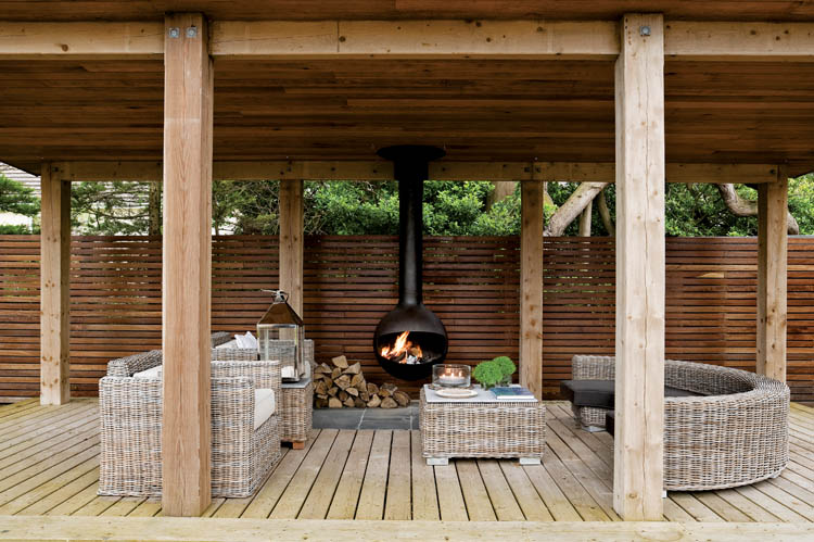 • Królem foteli na werandzie jest finezyjnie pleciony paw, kupiony na Westwingu. Letni salon w południe