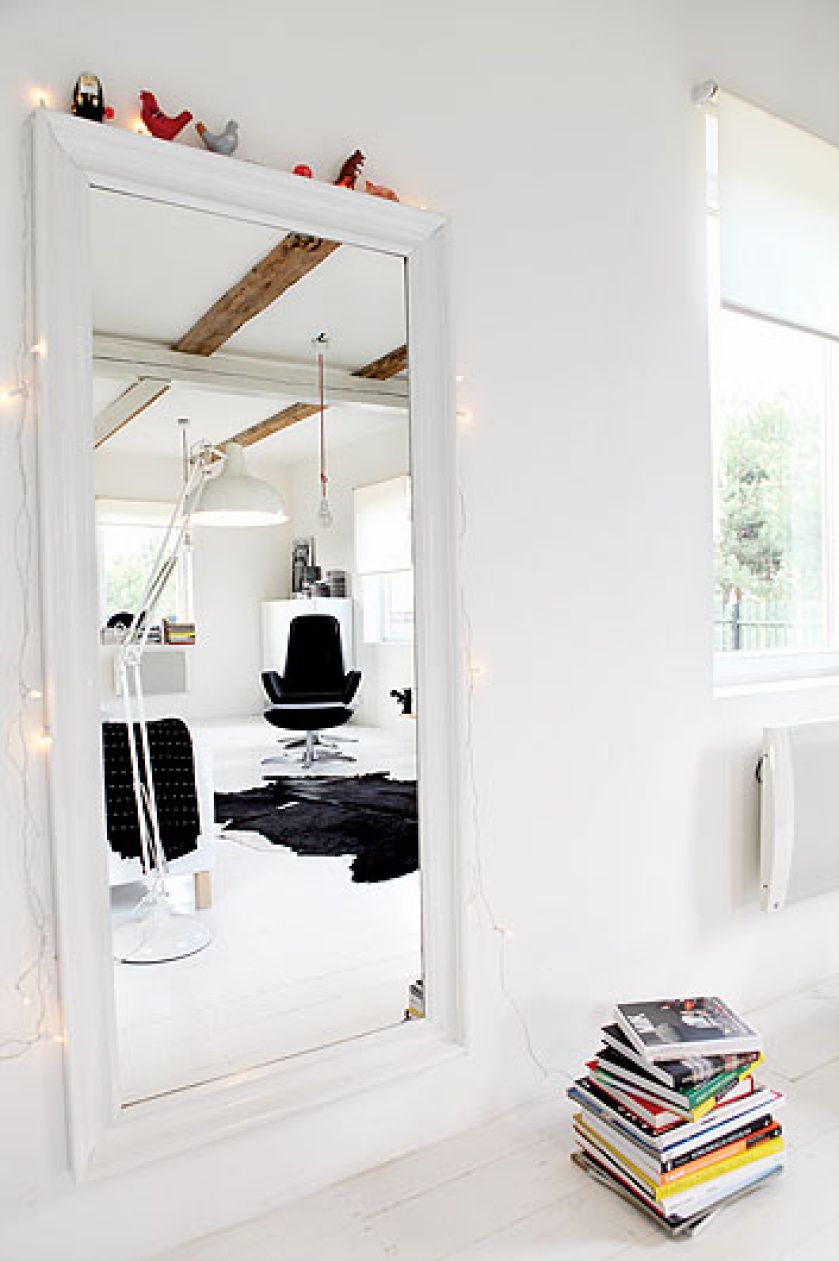Białe wnętrze z dizajnerskimi przedmiotami.