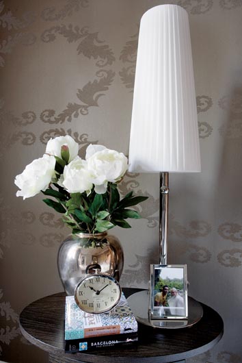 Dekoracja na nocnym stoliku dodaje sypialni romantyzmu.