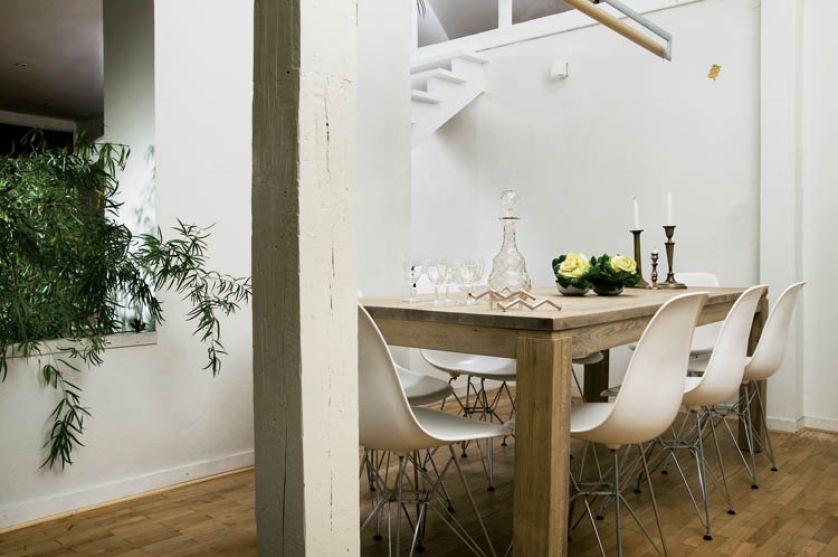 Podczas większych przyjęć w ruch idzie długi, rozsuwany stół.