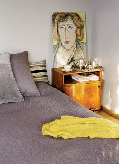 Kopie obrazów Witkacego zdobią hol i sypialnię.