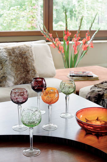 Uwagę w salonie przyciągają kryształowe kieliszki modne w latach 80.