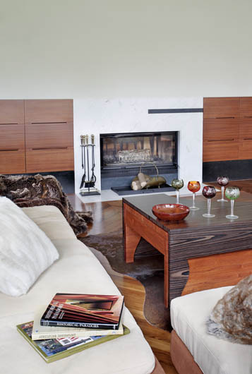 Brązowy stolik i meble w salonie świetnie pasują do kanapy z beżowym obiciem.