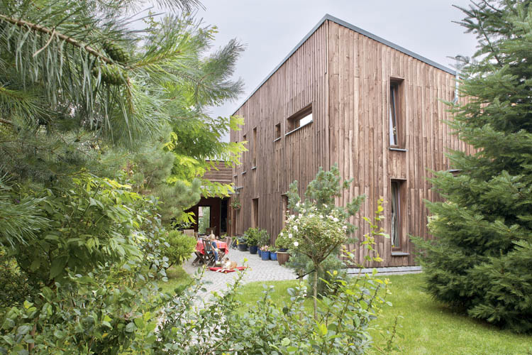 Ten dom miał pasować do najbliższego sąsiada – do lasu. Dlatego został zrobiony z modrzewia. Teraz, gdy tylko wyjdzie słońce, pięknie pachnie żywicą. Beata i Krzysztof Jordanek kochają podróże. Przyciągają ich Hiszpania, Grecja, Chorwacja, słoneczne kolory, których ciepło nosi się w sobie przez cały rok. Cieszą się z mieszkania, gotowania, pływania na desce. Od dawna marzyli o wolności, jaką daje życie na wsi, ale też o spokoju, zieleni, ogródku z własnymi z