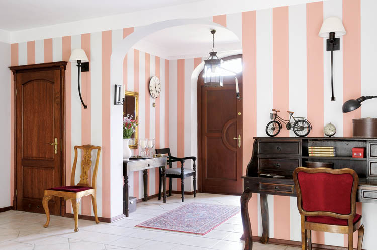 Hol jest rozległy, bo Monika i Robert uwielbiają tańczyć i gdy pojawiają się goście, hol zamienia się w dance floor.