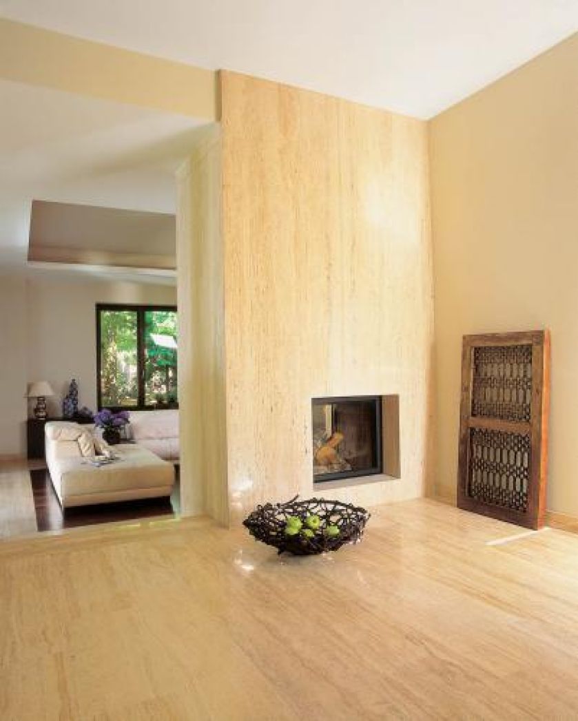 Efektowny dwustronny kominek ogrzewa cały dom.