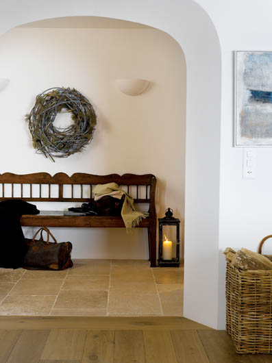 Hol z prostymi dekoracjami. Alpejski dom Anny