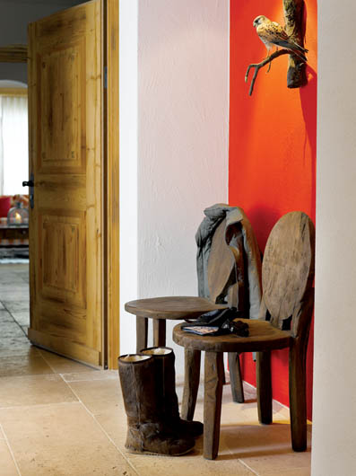 Gdyby nie czerwona ściana z ptaszkiem na gałęzi, na stare krzesła nikt nie zwróciłby uwagi.