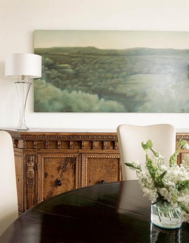 W jadalni wisi piękny pejzaż. W śródziemnomorskim stylu