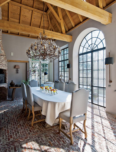 Czy nowiutka rezydencja może sprawiać wrażenie wiekowej? Jak najbardziej, wystarczy stara cegła, łupkowe dachówki i spatynowane meble. lle czasu odnawialiście ten dom? – dopytują się znajomi, którzy odwiedzają Ann pierwszy raz. – Zbudowaliśmy go od początku. W dwa lata – wyjaśnia. Goście reagują śmiechem, bo sądzą, że to dowcip, ale kiedy widzą poważną minę Ann, zazwyczaj robią duże oczy.   Dom na szczerym polu   Dom powstał w szcze